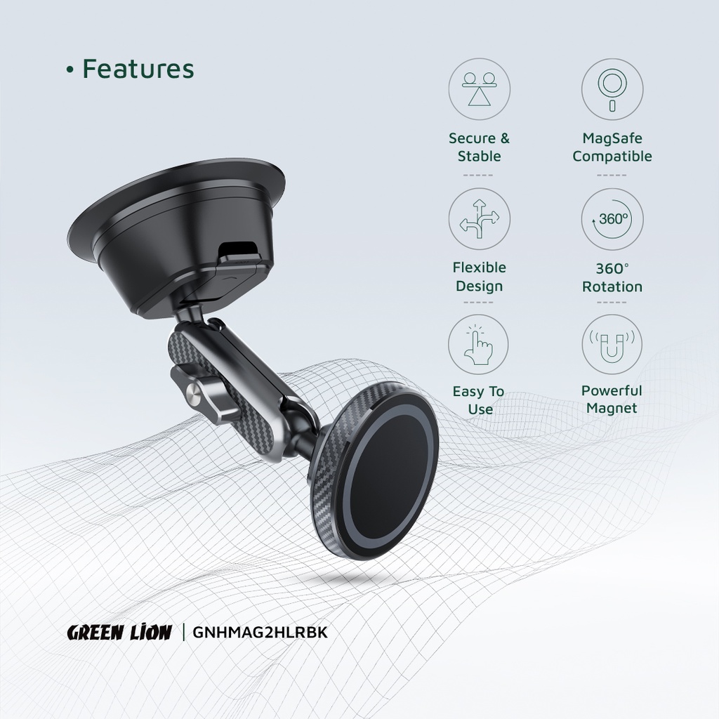 The Green Lion Halo MagSafe 2 Car Holder is made for drivers who need to use their phones while driving. This car phone holder is made of 17 strong magnets that hold your phone in place even on bumpy roads. This mount can be installed on both the window and dashboard of your car and by being able to rotate 360°, it can be useful for navigating through anywhere.