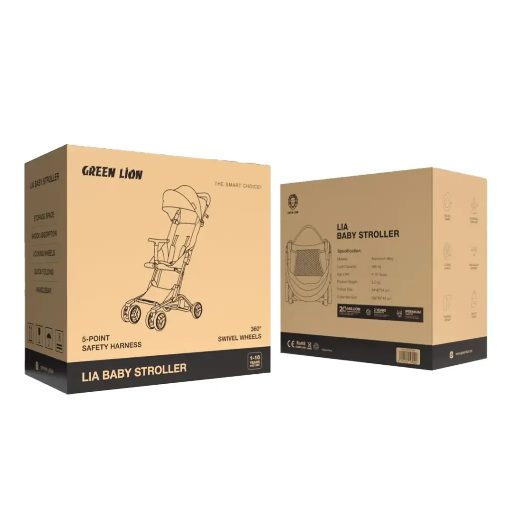 Green Lion Lia Baby Stroller is durable, comfortable, and practical—all in one, making it the ideal choice for any parent looking for a reliable means of transport for their child. The high-quality aluminum alloy frame forms a sturdy structure capable of supporting a maximum weight of 100 kg, suitable for children from the age of 1 up to 10 years. Weighing only 5.2 kg, the stroller is easy to carry and maneuver. It folds down to a compact size of 24×40×24 cm for convenient storage after use. When fully opened, it measures 102×62×43 cm, providing ample space for a child to sit or sleep comfortably. Lockable wheels and a dual brake system ensure stability and safety. Additionally, parents will appreciate the adjustable sun canopy that shields their child’s eyes from harsh sunlight. It’s the perfect solution for families seeking the ideal balance between comfort and portability.