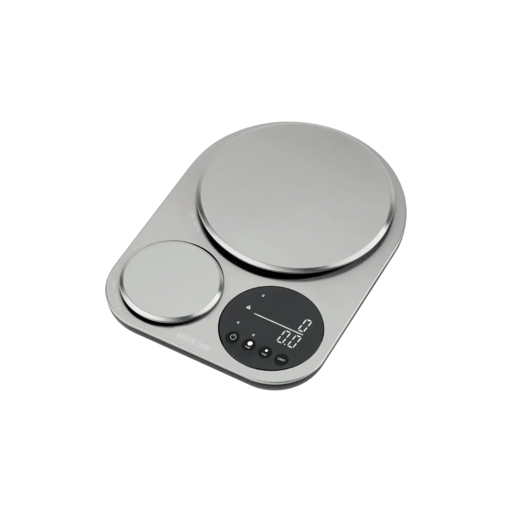 The Green Lion Dual Kitchen Scale is an accurate and multi-purpose solution for weighing needs that meets all your kitchen needs. Constructed from heavy Stainless Steel 201, the scale combines sleek designs with strength in functionality. There are two surfaces for large and small sizes with a maximum area capacity of 5kg (11 lbs) and a division of 1g, perfect for bulk food supplies. The small unit offers a precise capacity of 500g (17.64oz) with 0.1g graduation, which is ideal for weighing small quantities like herbs or spices. 3 AAA batteries power the scale and offer convenient additions like auto shut-off after 120 seconds, net weight function with tare, and low battery and overload warning. The clear, simple-to-read digital screen allows easy reading, which makes the Green Lion Dual Kitchen Scale essential to every kitchen.