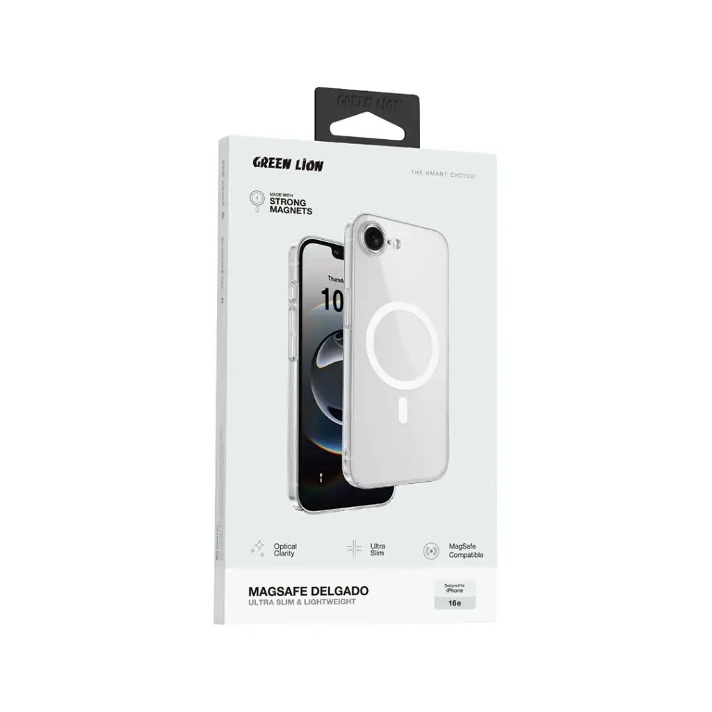 The Green Lion MagSafe Delgado PC Case for iPhone 16e is where form meets functionality. MagSafe compatible, the case boasts strong magnets that give your iPhone a secure grip, enabling wireless charging without having to remove the case. Minimalism lovers, rejoice. The case is ridiculously slim and light, adding hardly any bulk to your device. It provides optical clarity, showcasing the natural beauty of your iPhone while offering dependable protection against minor impacts and scratches. Built with durability, the Green Lion MagSafe Delgado PC Case for iPhone 16e offers the ideal fusion of style, protection, and convenience. Whether you’re charging wirelessly or taking advantage of the crystal-clear finish of the case, the case is the ideal fit for your iPhone with its classy look.