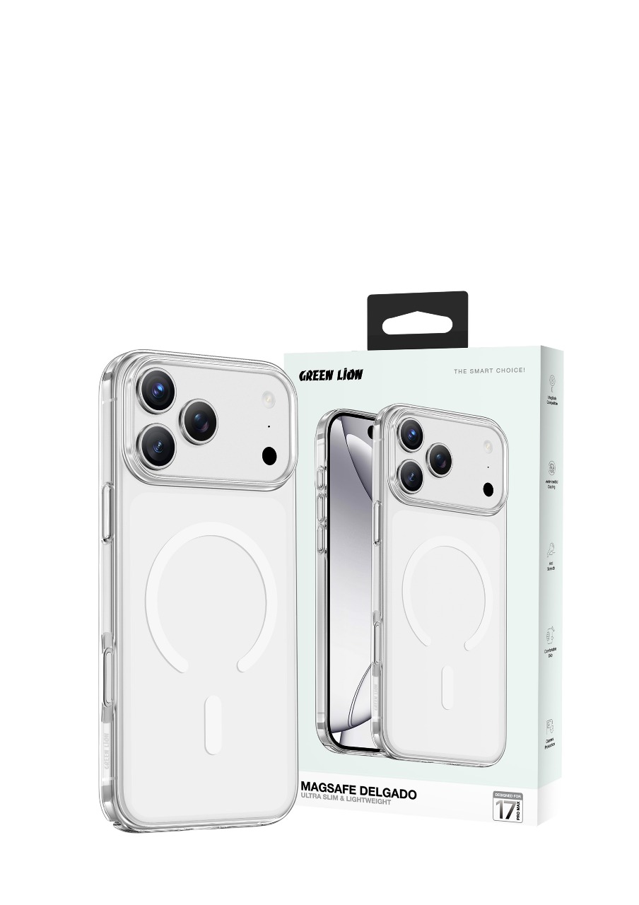 The Green Lion MagSafe Delgado Case for iPhone 17 Series protects your device with daily‑use durability while delivering ultra‑slim, crystal‑clear style. This clear MagSafe‑compatible case shows off the sleek design of your iPhone 17, 17 Air, 17 Pro, or 17 Pro Max without hiding its beauty. Built with anti‑scratch and anti‑fingerprint finishes, it includes camera protection and precise cutouts so all ports, buttons, and features remain fully accessible. The Delgado case combines minimalist elegance with functional protection for your phone.