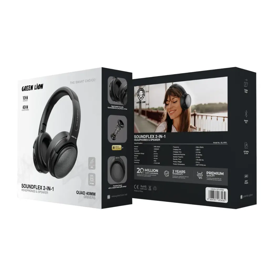 The Green Lion SOUNDFLEX 2-in-1 Headphones and Speaker gives you versatile audio that’s pretty high quality. It works for music fans and anyone needing comfort during long sessions. You know, the thing is, it has this unique 2-in-1 setup. So you can switch it easily from headphones to speaker mode. That way, premium sound comes through whether you’re moving around or just chilling at home. Comfort comes from those high-quality earmuffs. Oh, and the classic metal grille looks nice too. Inside, quad 40mm drivers handle the audio rich and strong. Performance holds up for about 40 hours on headphones. Speaker mode gets you 10 hours. Basically, the Green Lion SOUNDFLEX mixes style with comfort. It throws in advanced audio tech all in one package. Premium sound, battery that lasts, and that switchable versatility make it a solid pick.