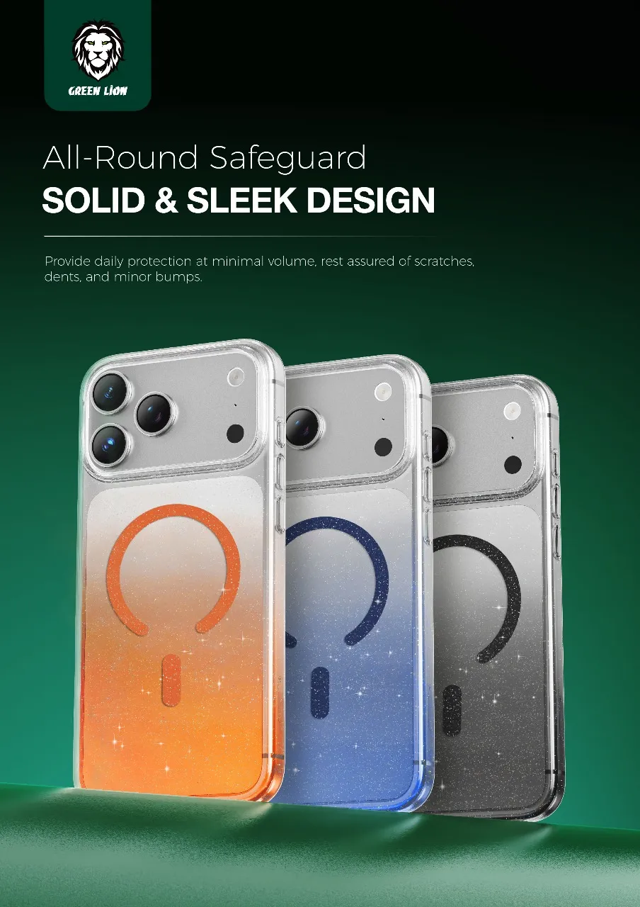 The iPhone 17 Pro/Pro Max Glitter MagSafe Case by Green Lion is a perfect mix of style, protection, and functionality, all in a single modern design. It is manufactured from top-quality PC material, which makes the case very strong and also anti-fingerprint, so it will look very clean and pristine all the time. The compatibility with MagSafe allows effortless charging without having to take off the case, while the camera protection feature prevents the lens from getting scratches. Its super-light and ultra-slim design gives a comfortable grip without the bulk, thus it is very suitable for daily use. One can enjoy everlasting clarity with the very clear and resistant yellowing over time, a finish that keeps the case looking new. Be it protecting your phone or making it more attractive with a case’s glittery finish, this case is a winner in both style and durability.