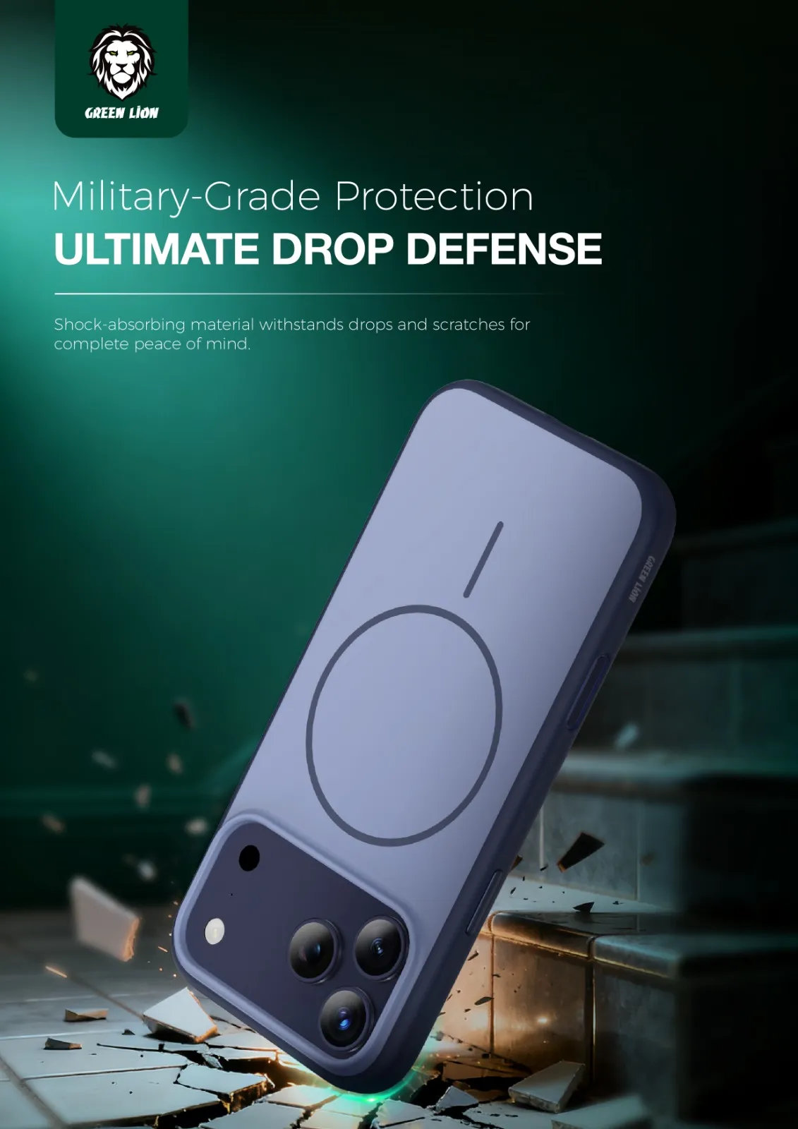 Green Lion Patric MagSafe Premium Matte Finish Case for iPhone 17 Pro/Pro Max is an epitome of style, strength, and functionality. Being MagSafe compatible facilitates various accessories to be easily attached and wirelessly charged. Drop protection is of a very high order, so your device is guaranteed safety from impacts. The anti-yellowing feature helps preserve the beauty of the case over time. Great grip and camera protection offer a perfect package of essential protection against everyday use. It has very carefully designed cutouts, allowing a tight fit, and magnetic force (N52/2500Gs) to maintain a secure MagSafe connection. Metal buttons are used to lend that extra feel of premium quality, while the oil-resistance and anti-fingerprint coatings keep the case looking clean. The case is made of PC-TPU hybrid material, a perfect anti-flex-rigid material that offers a slim profile without compromising on protection.