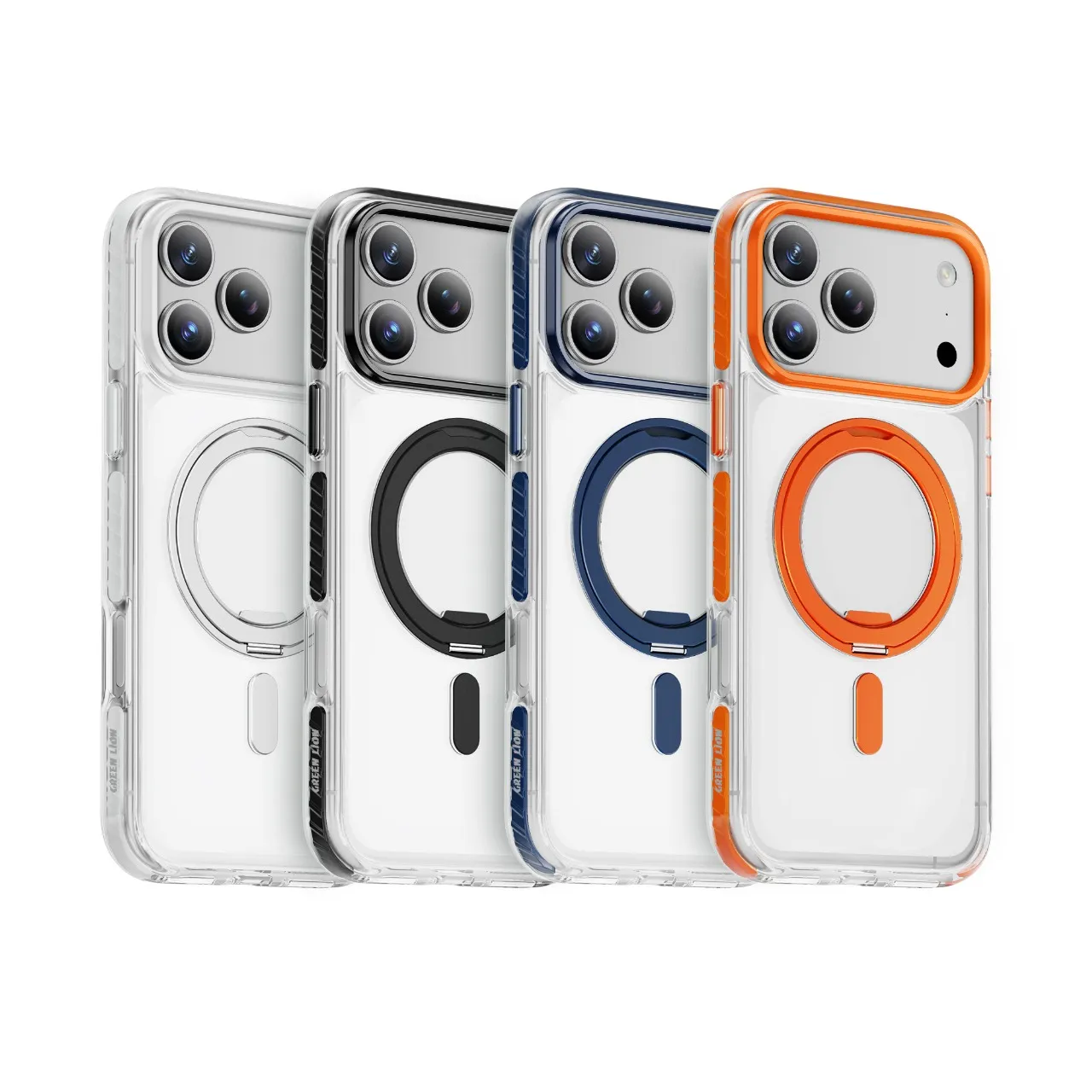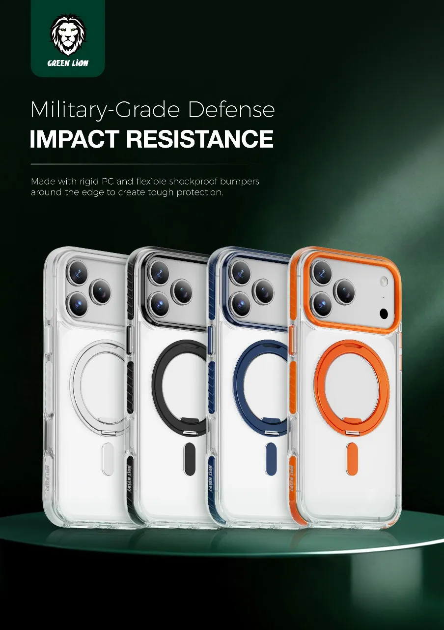 The Green Lion Southend MagSafe Case is the ultimate combination of protection, style, and functionality for your phone. Designed to be truly MagSafe compatible, it allows the full use of wireless chargers and all magnetic accessories while completely covering the device in the finest protection. Formed from a hybrid fusion of TPU, PC, and TPE materials, the case offers military-level protection against the full bending, dropping, and scratching gamut. The impact absorption for the camera section is achieved through the TPU and PC layers specifically designed for the camera area. The integrated rotating metal ring stand is the most generous feature of all – it allows you to use the device hands-free in any orientation, yes, even the upside-down position, making video conferencing, content watching, or gaming the most convenient activity ever. The sturdy metal buttons deliver a tactile touch while being resistant to wear and tear, and the anti-fingerprint coating maintains the case looking immaculate and smooth. With strong N52 magnets that create 3000 Gauss, the case will not only give you a strong hold but also provide smooth and perfect alignment with your MagSafe devices. Elegant, useful, and very protective, the Green Lion Southend MagSafe Case is a necessary partner for those who seek sophistication and outstanding performance.