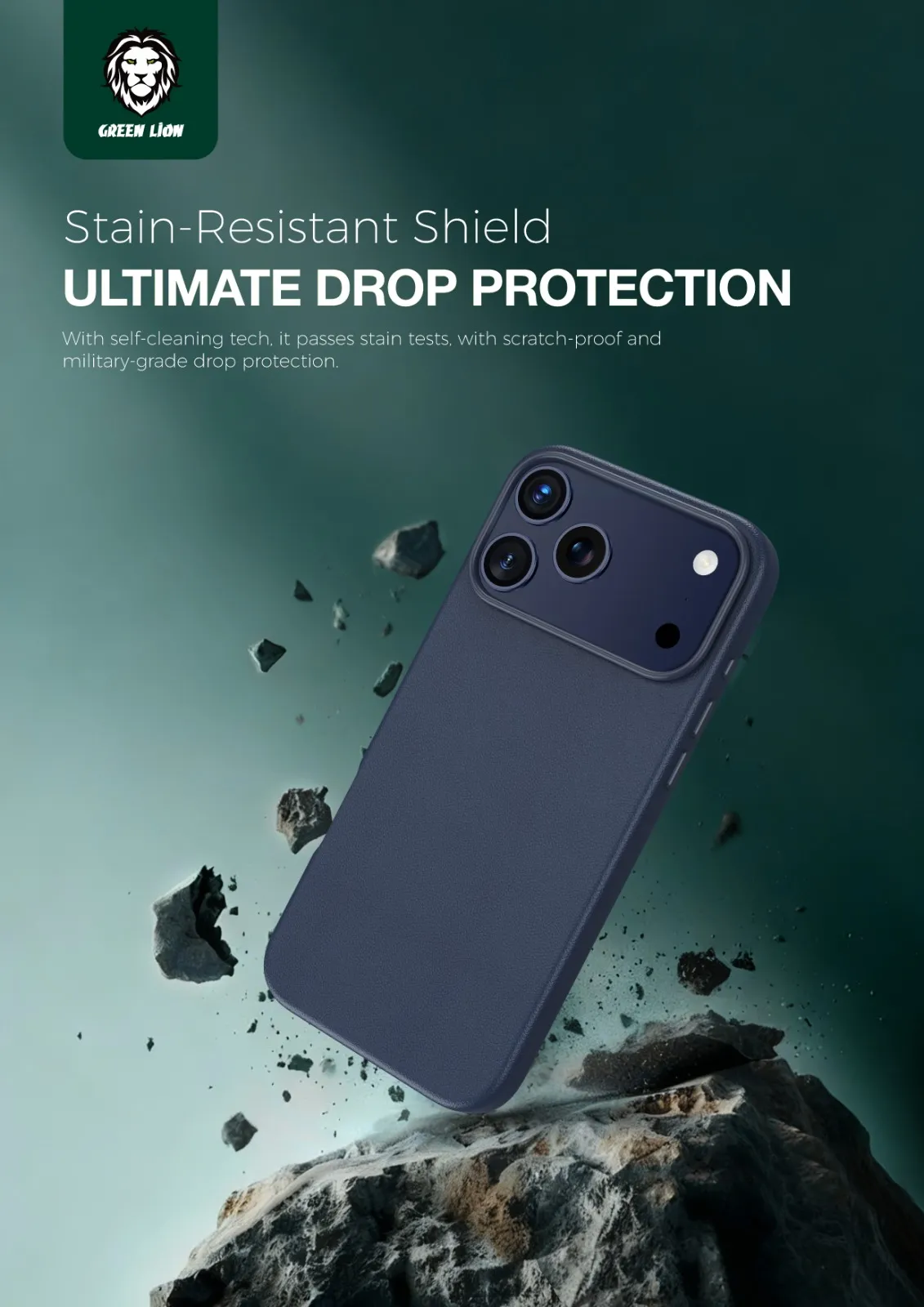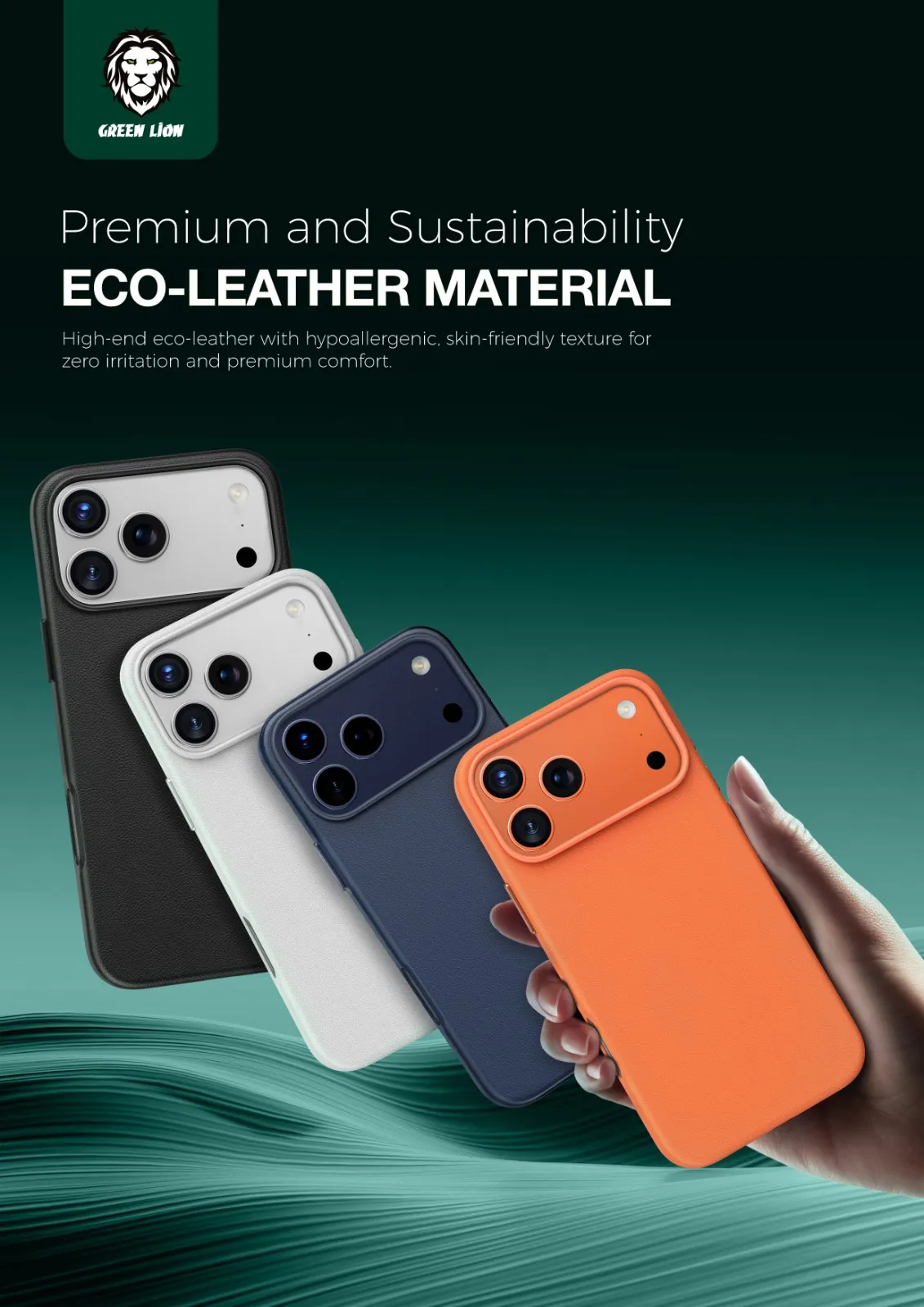 The Green Lion Leather MagSafe iPhone 17 Pro/Pro Max case is made with style and heavy protection. The finest eco-leather material lends the case a classy and elegant appearance while being environmentally sustainable. MagSafe-compatible, meaning the case can be attached to MagSafe accessories instantly with objects from the house while wirelessly charging or without attaching more spurs. The case has all-around drop protection to prevent any damage due to bumps or falls, and can protect your phone camera from scratches or damage, so that your photography is clear and crisp. It provides a beautiful look to the case that is easy to clean and free from scratches, while giving a non-slip grip that is pleasant to hold onto in everyday use. The Green Lion Leather MagSafe case is this and that maximally understated and maximally protective and really stylish for persons who want premium looks and reliable protection for their iPhone 17 Pro/Pro Max.