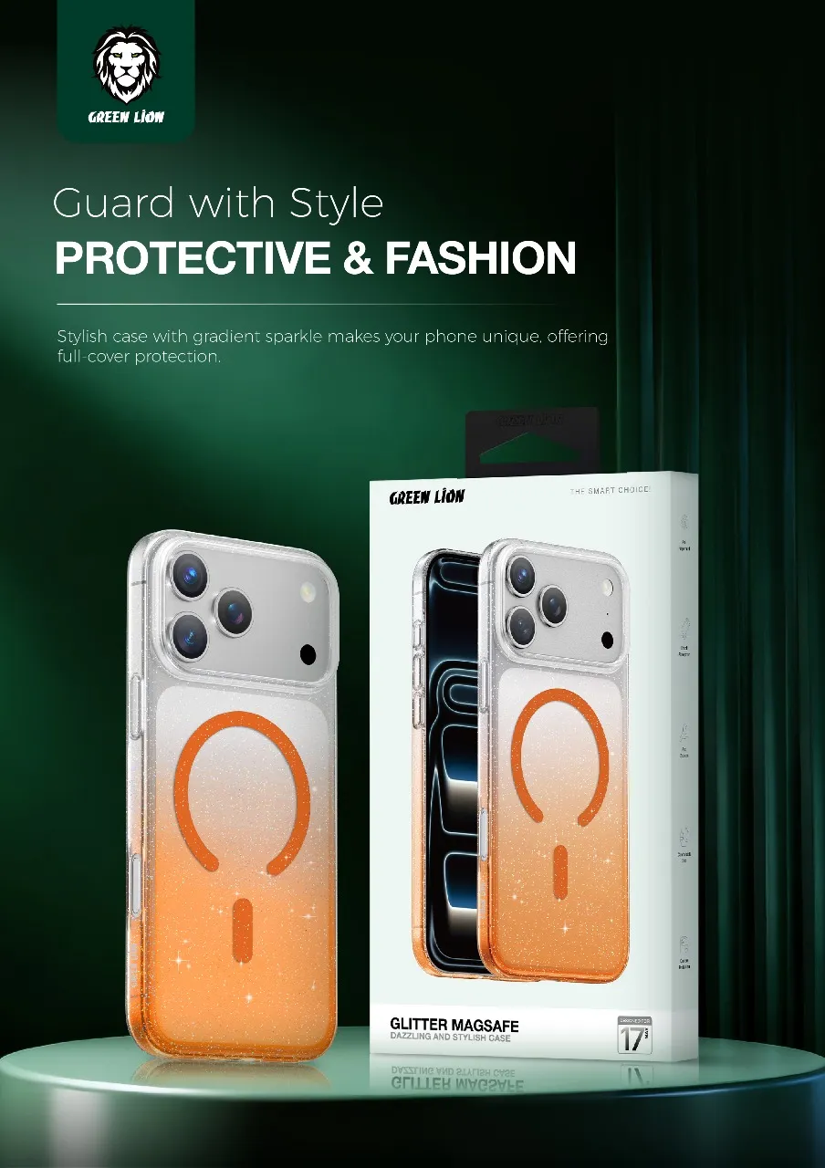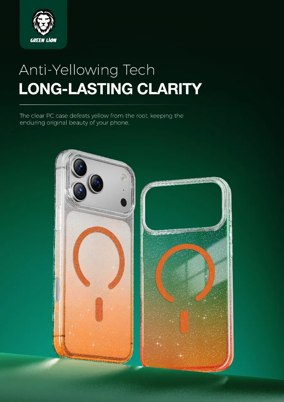 The iPhone 17 Pro/Pro Max Glitter MagSafe Case by Green Lion is a perfect mix of style, protection, and functionality, all in a single modern design. It is manufactured from top-quality PC material, which makes the case very strong and also anti-fingerprint, so it will look very clean and pristine all the time. The compatibility with MagSafe allows effortless charging without having to take off the case, while the camera protection feature prevents the lens from getting scratches. Its super-light and ultra-slim design gives a comfortable grip without the bulk, thus it is very suitable for daily use. One can enjoy everlasting clarity with the very clear and resistant yellowing over time, a finish that keeps the case looking new. Be it protecting your phone or making it more attractive with a case’s glittery finish, this case is a winner in both style and durability.