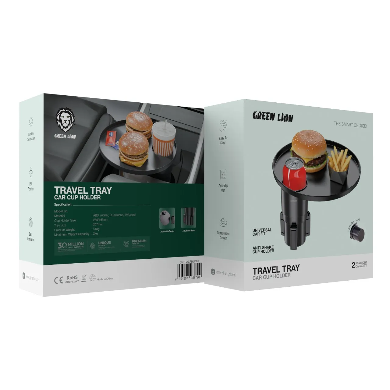 The Black Green Lion Travel Tray Car Cup Holder is a must-have accessory not only for long trips but also for day-to-day office work. It is formed from layers of various materials, including ABS, rubber, PC, silicone, EVA, and a tiny bit of steel, which together create nothing short of a robust and reliable structure. Rotating it gives the user total access and flexibility, while the slip-resistant mat keeps the cup secure even on bumpy roads. The detachable feature allows for easy cleaning and storage when the gadget is not in use. Also, the holder is able to take a 2kg load, which is pretty much anything in the form of drinks or small items. The universal fit ensures it can be installed in almost all car models; moreover, the anti-shake cup holder serves as a barrier to spills and messes. This travel tray is not only functional in the car but also a keeper of everything in position, whether you are sipping your coffee or hiding small things; thus, it makes every drive more enjoyable.