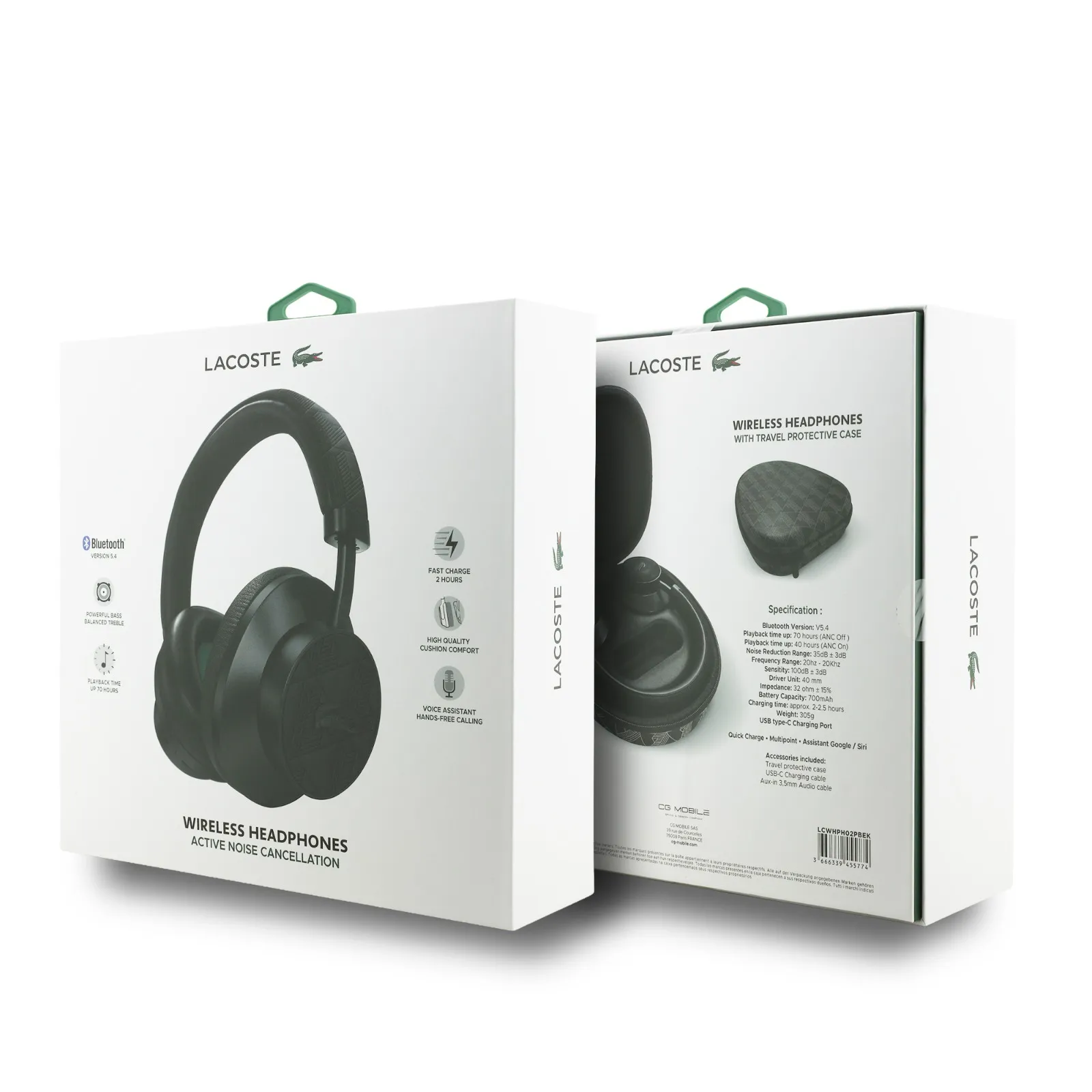 Lacoste Hybrid ANC Bluetooth Headphones With Monogramme Design – Black