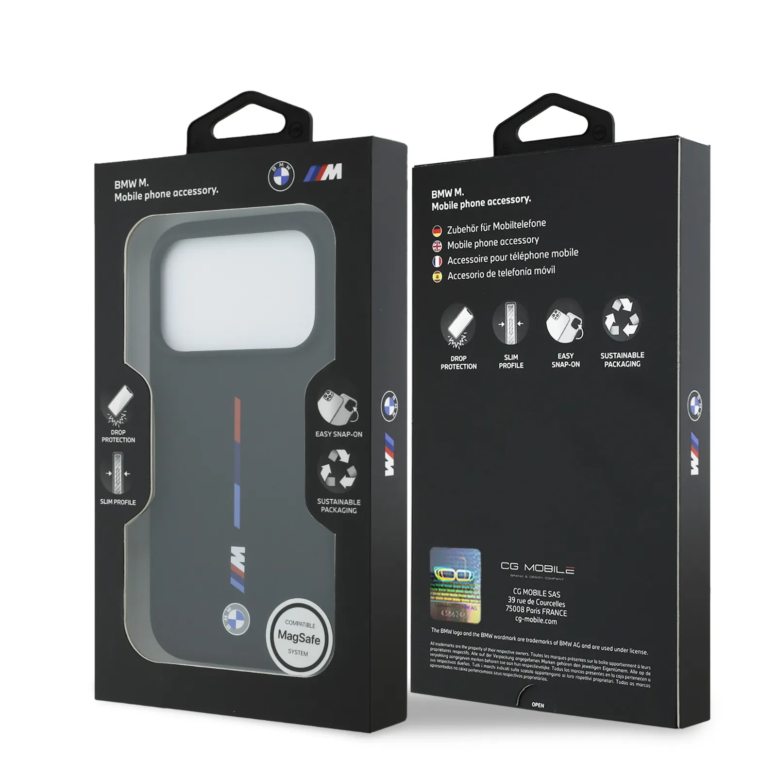 {BMOHMP17X25SITMIK} BMW MagSafe Liquid Silicone Case With Printed Tricolor For iPhone 17 Pro Max – Black