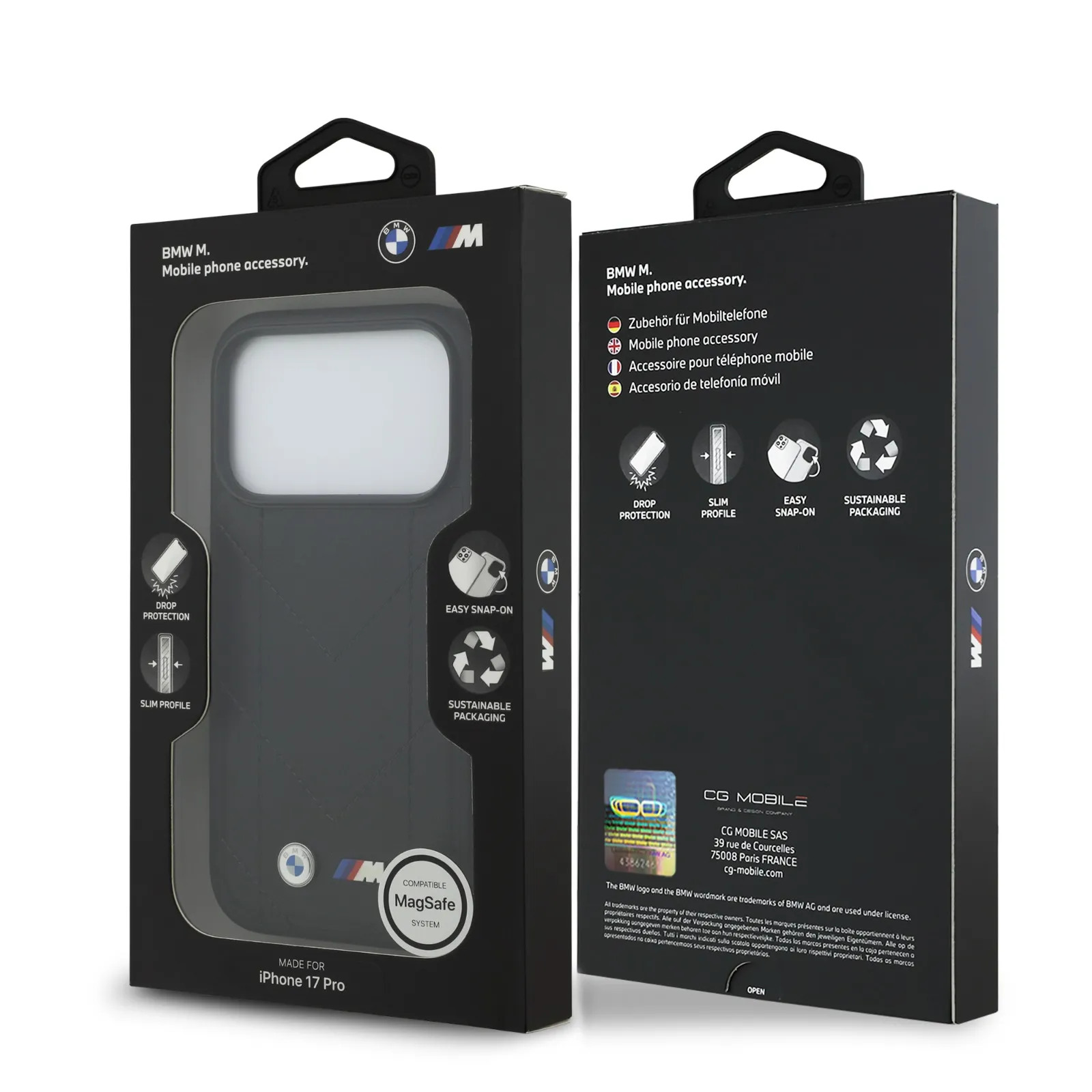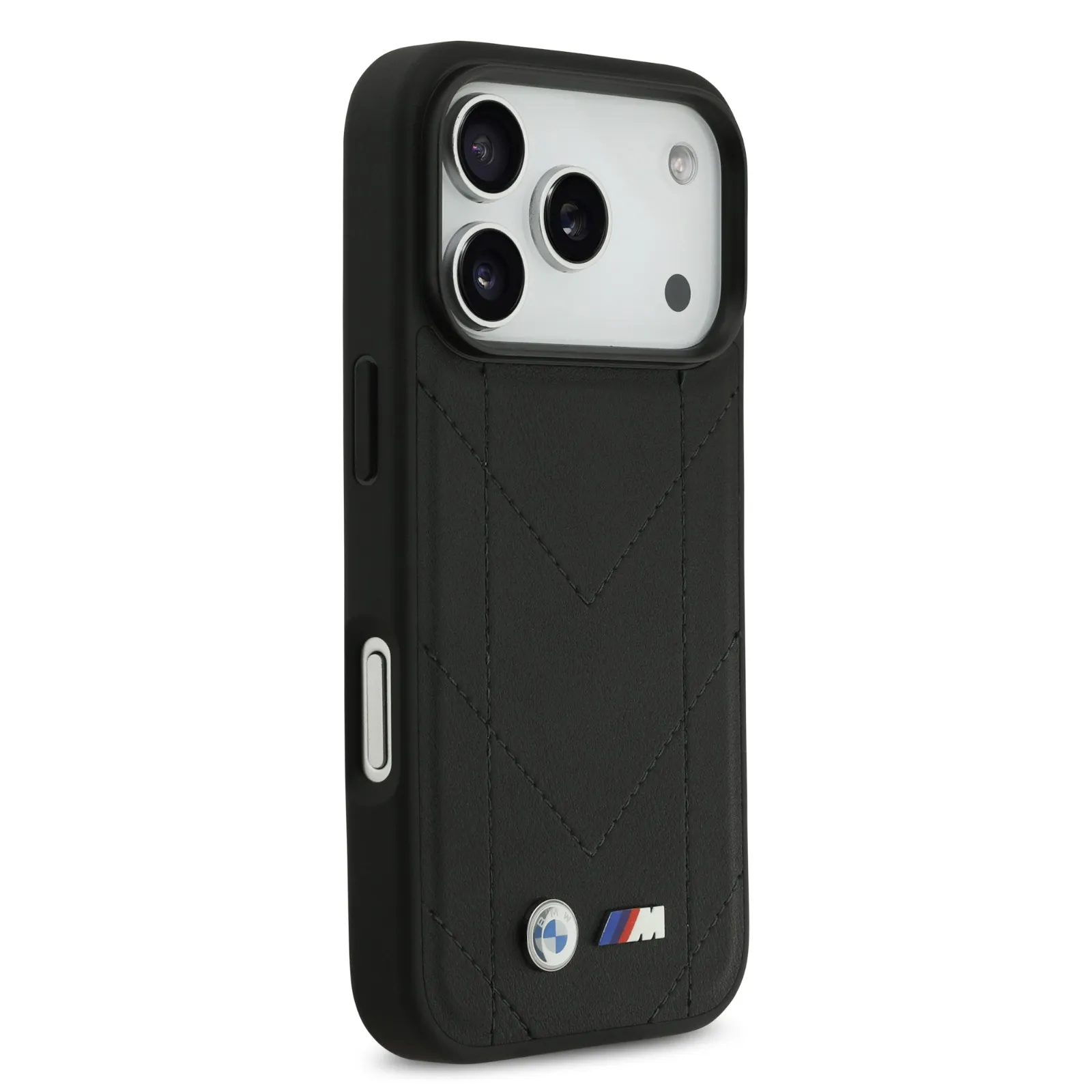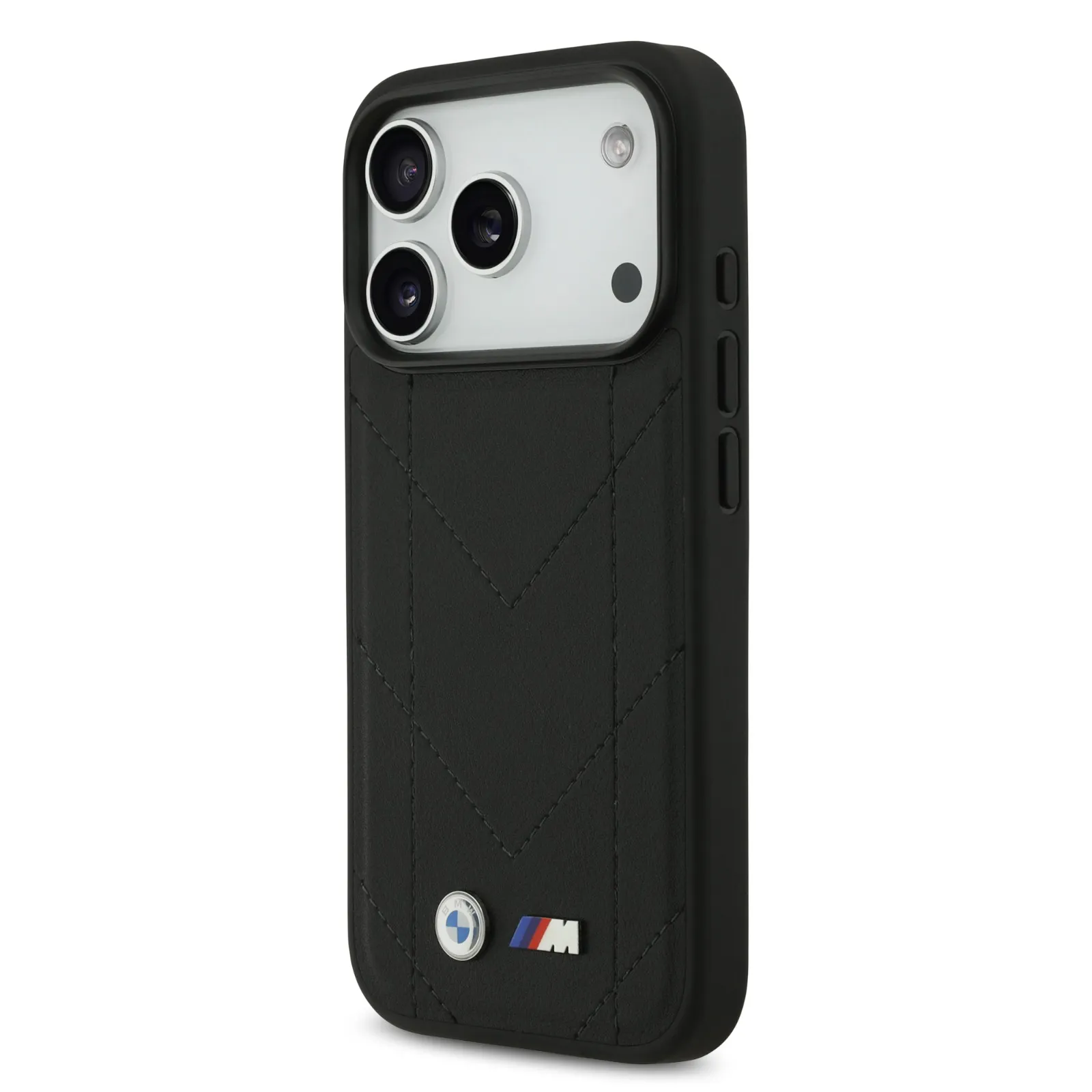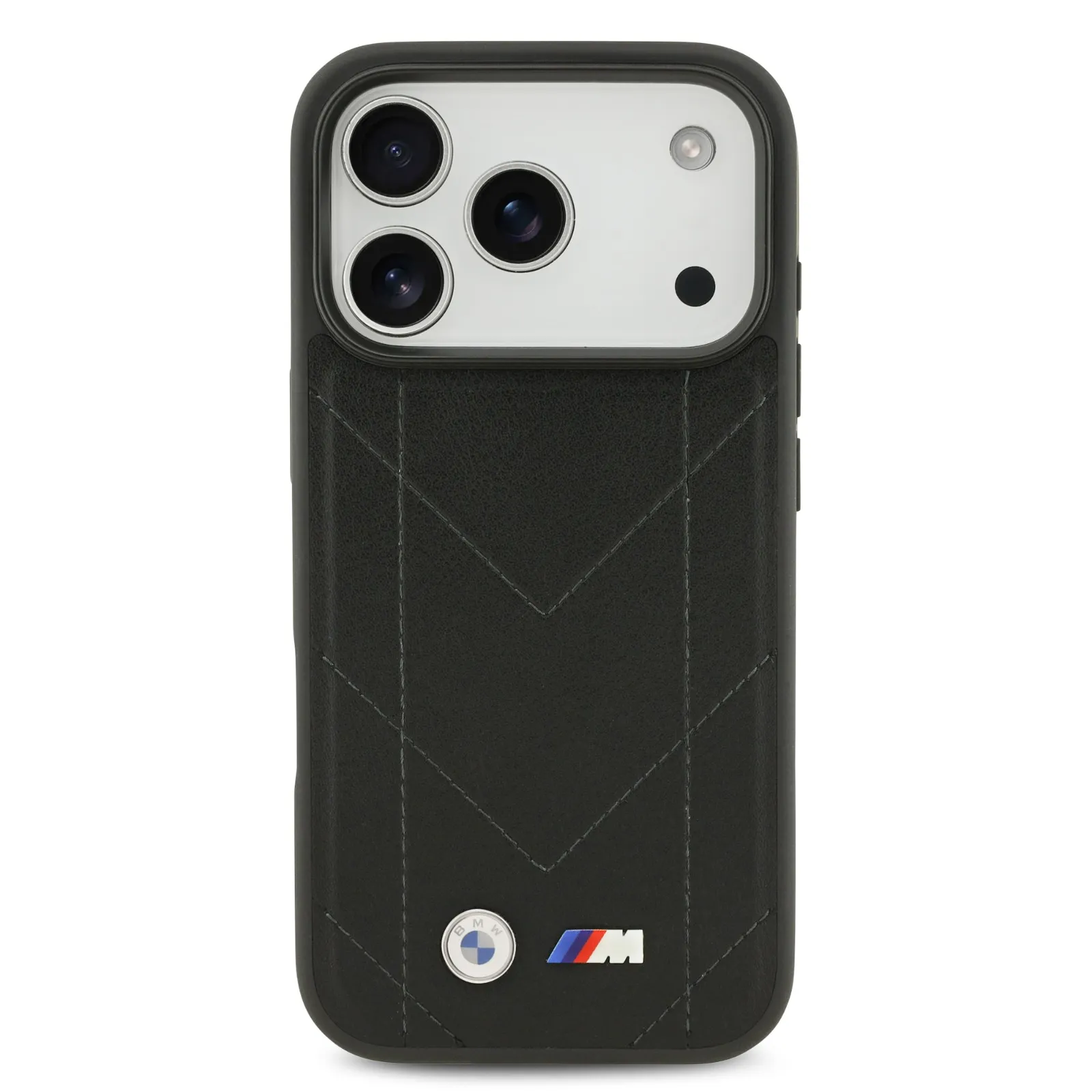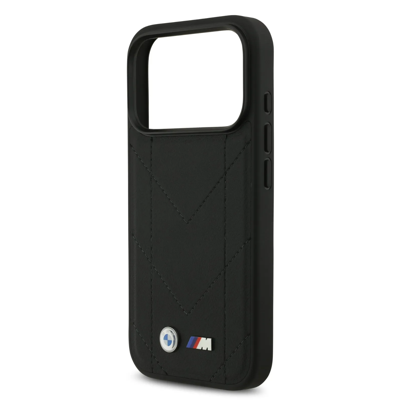 BMW MagSafe PU Quilted Leather Case With Metal Logo For iPhone 17 Pro – Black