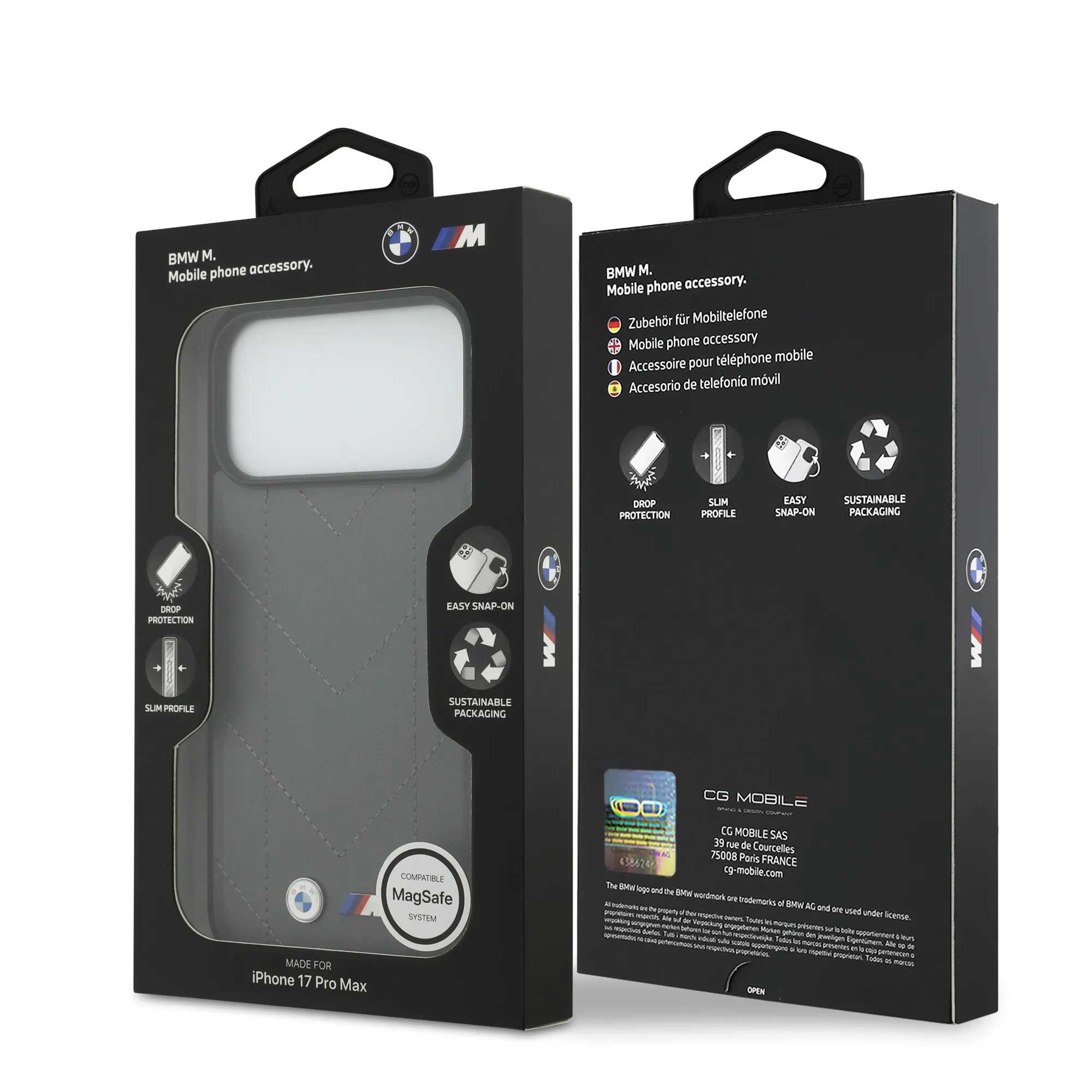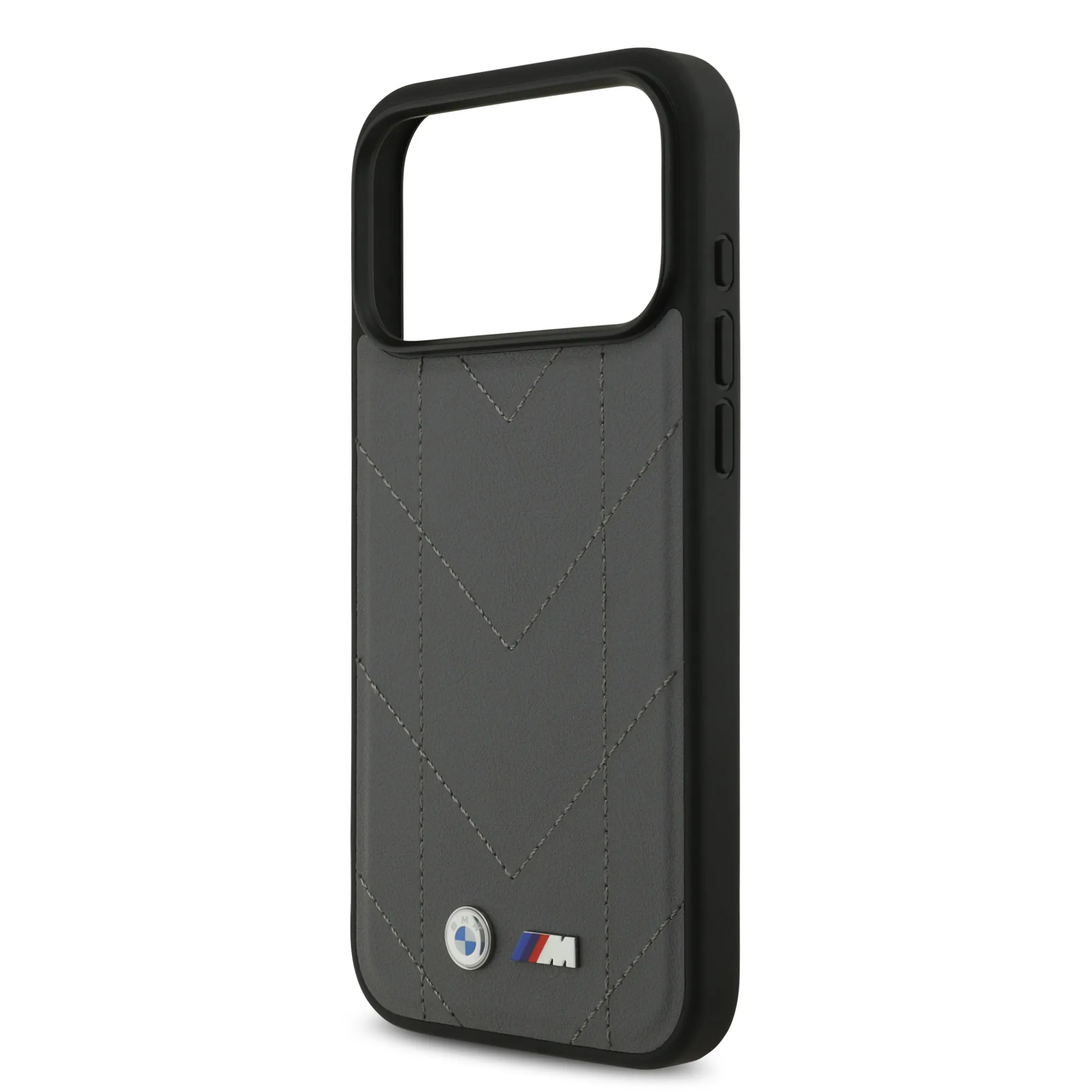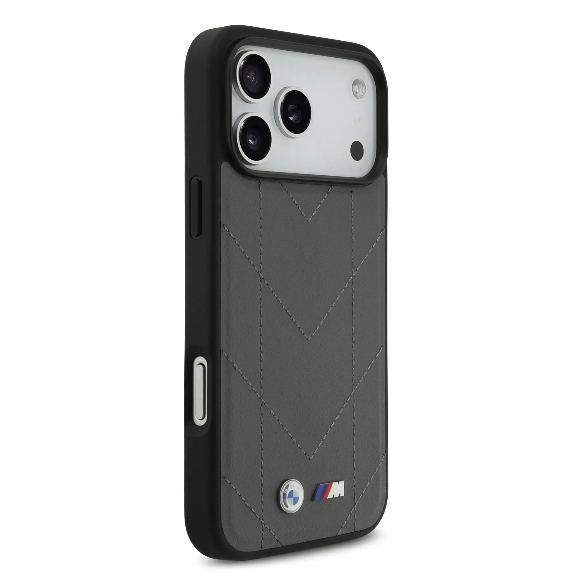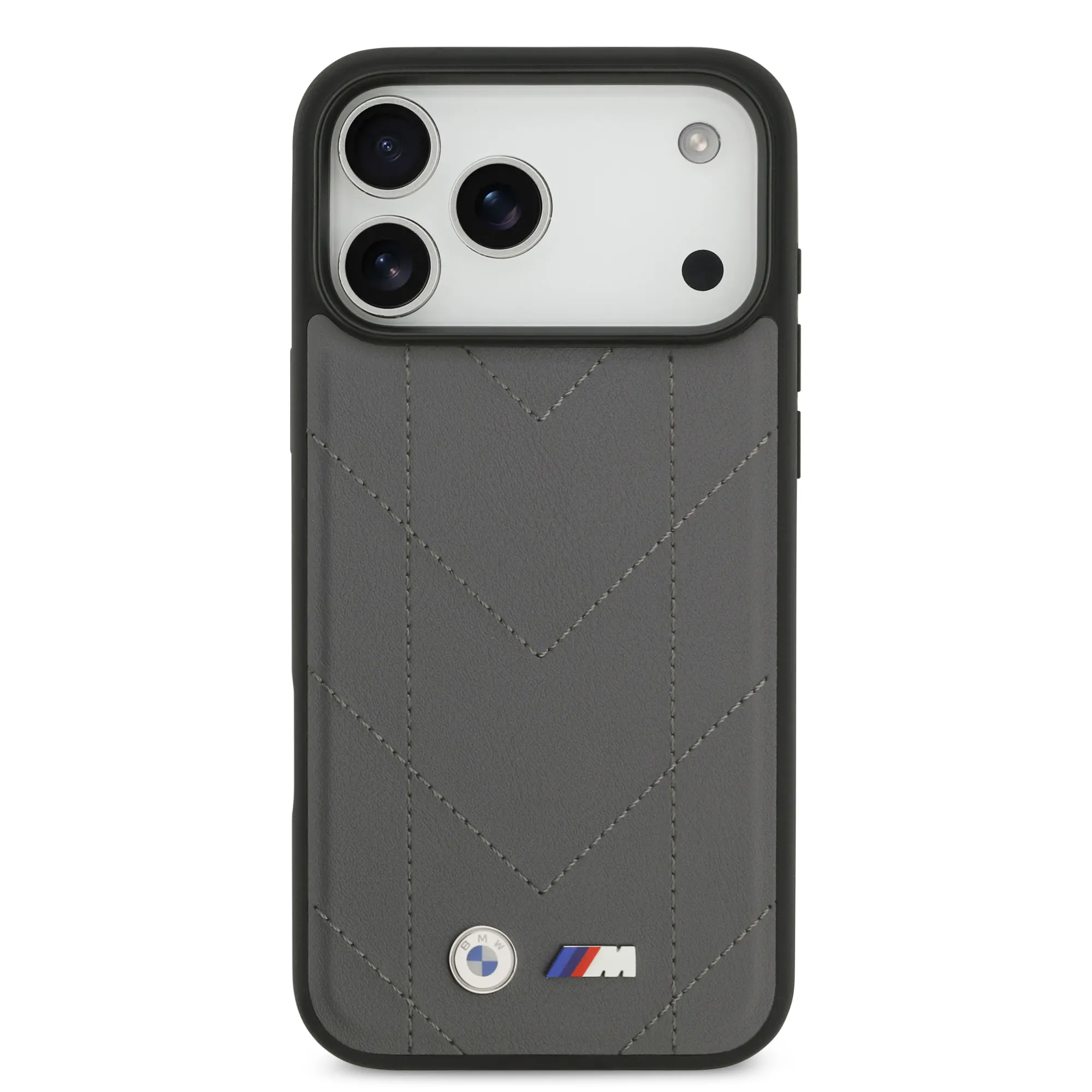 BMW MagSafe PU Quilted Leather Case With Metal Logo For iPhone 17 Pro Max – Grey
