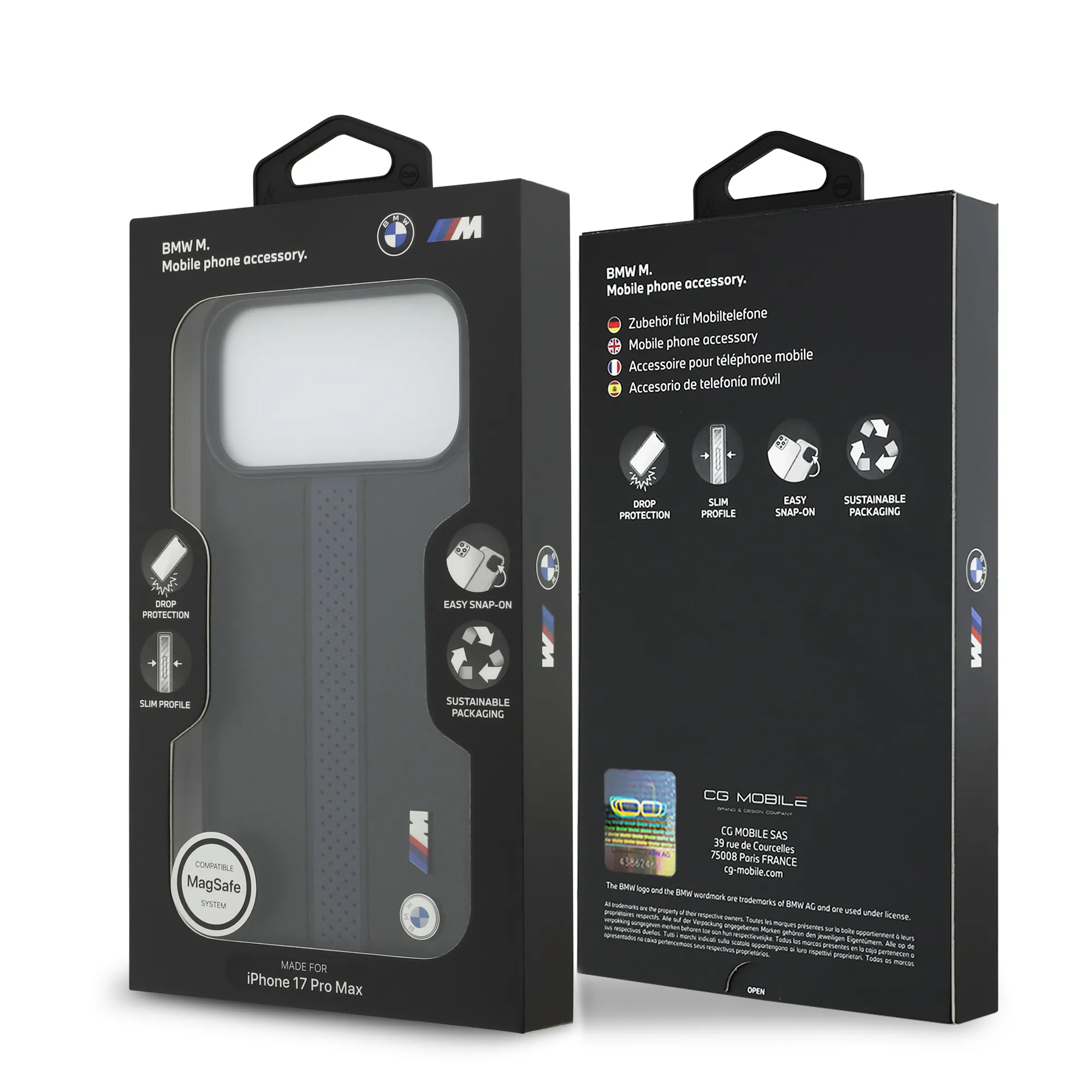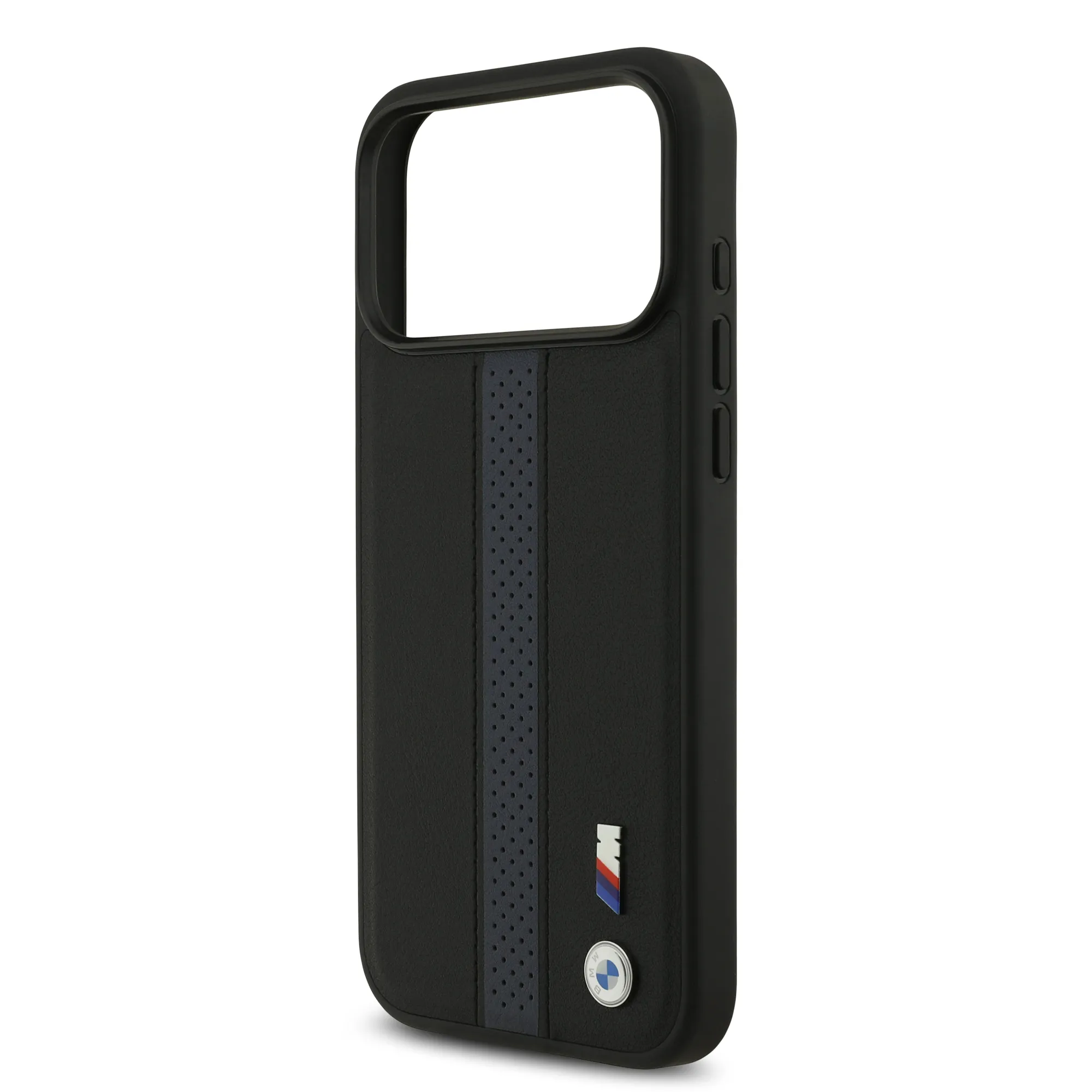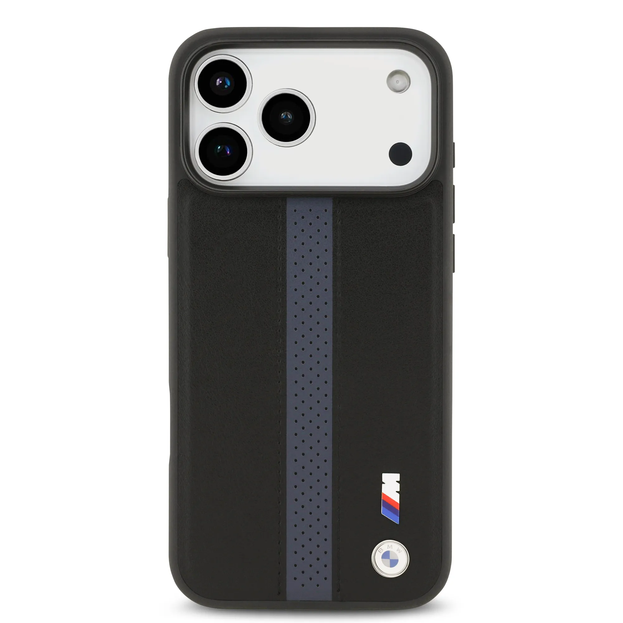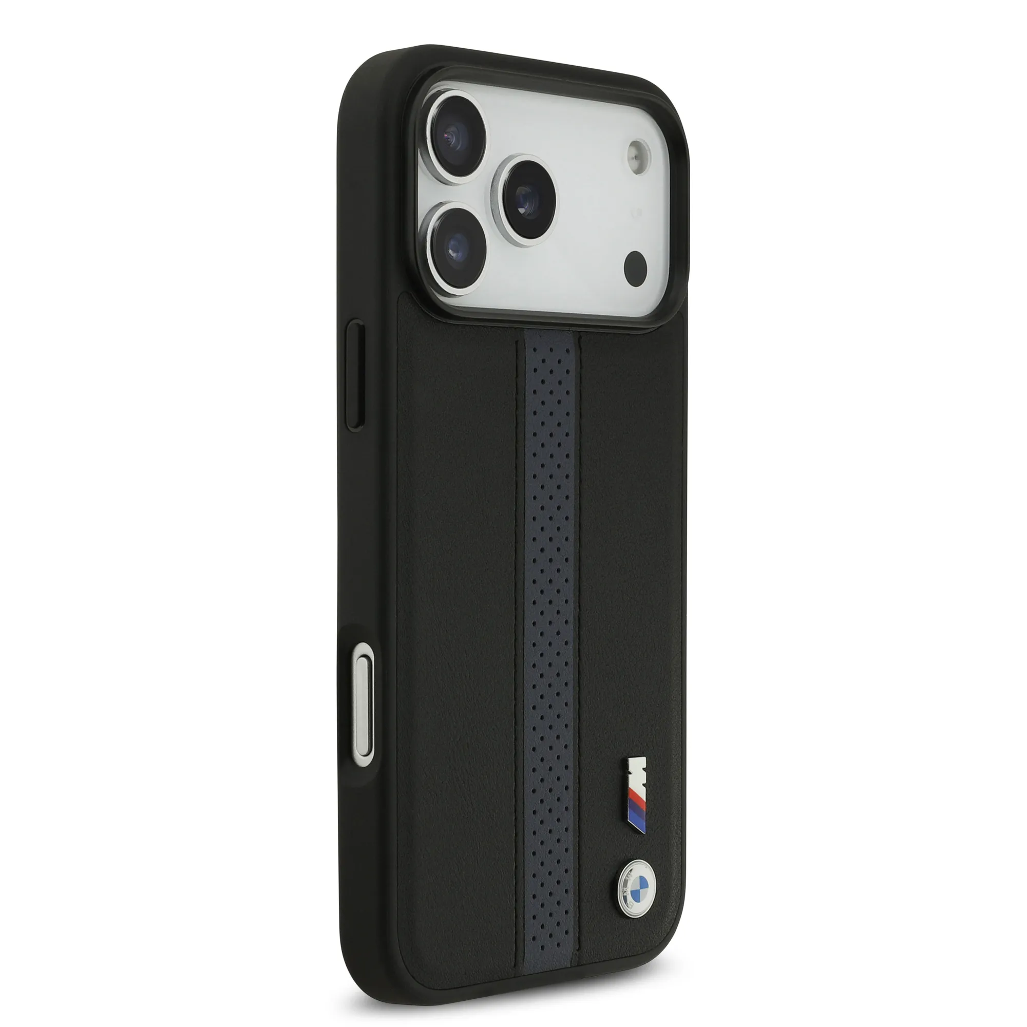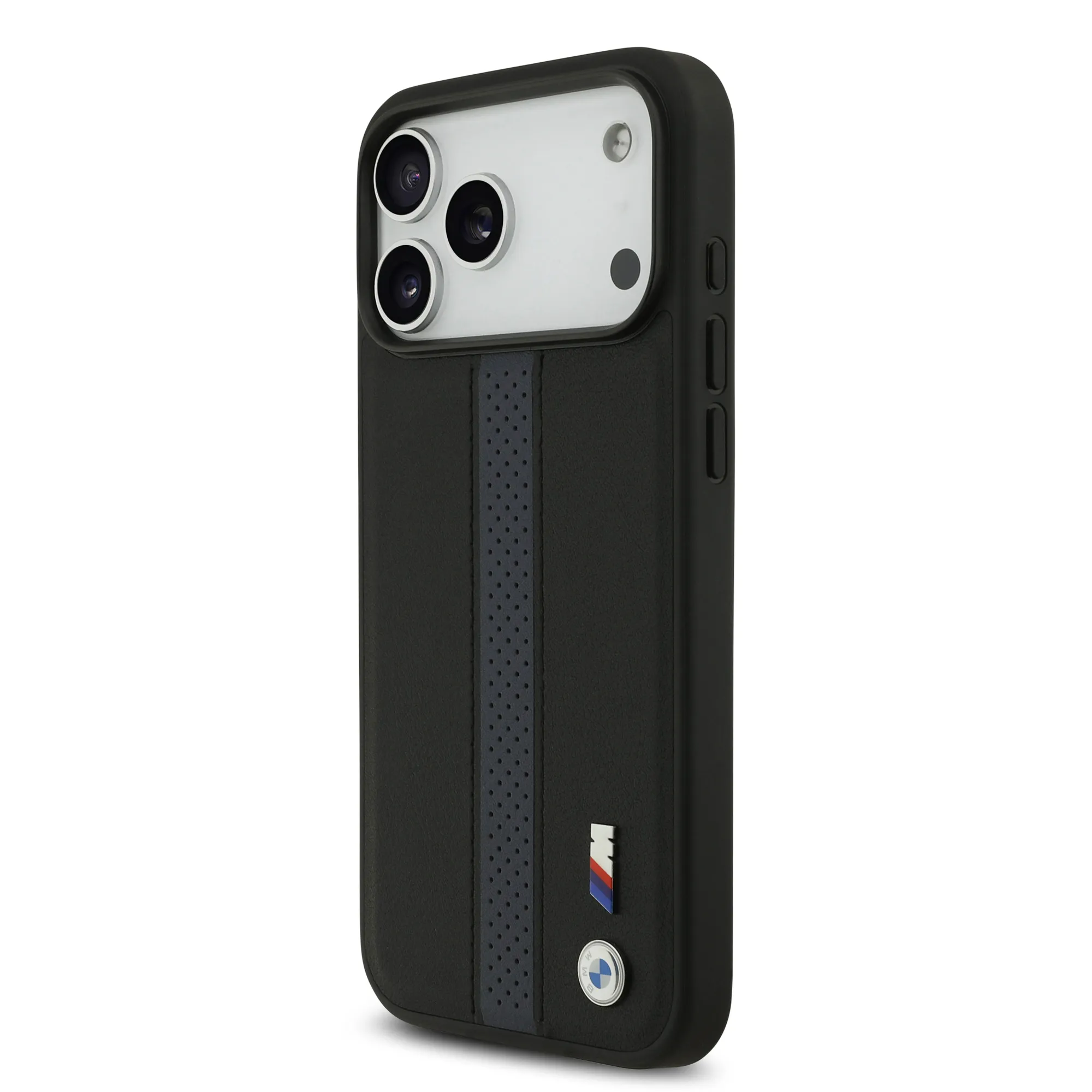 BMW PU Leather Case With Perforated Stripes & Metal Logos For iPhone 17 Pro Max