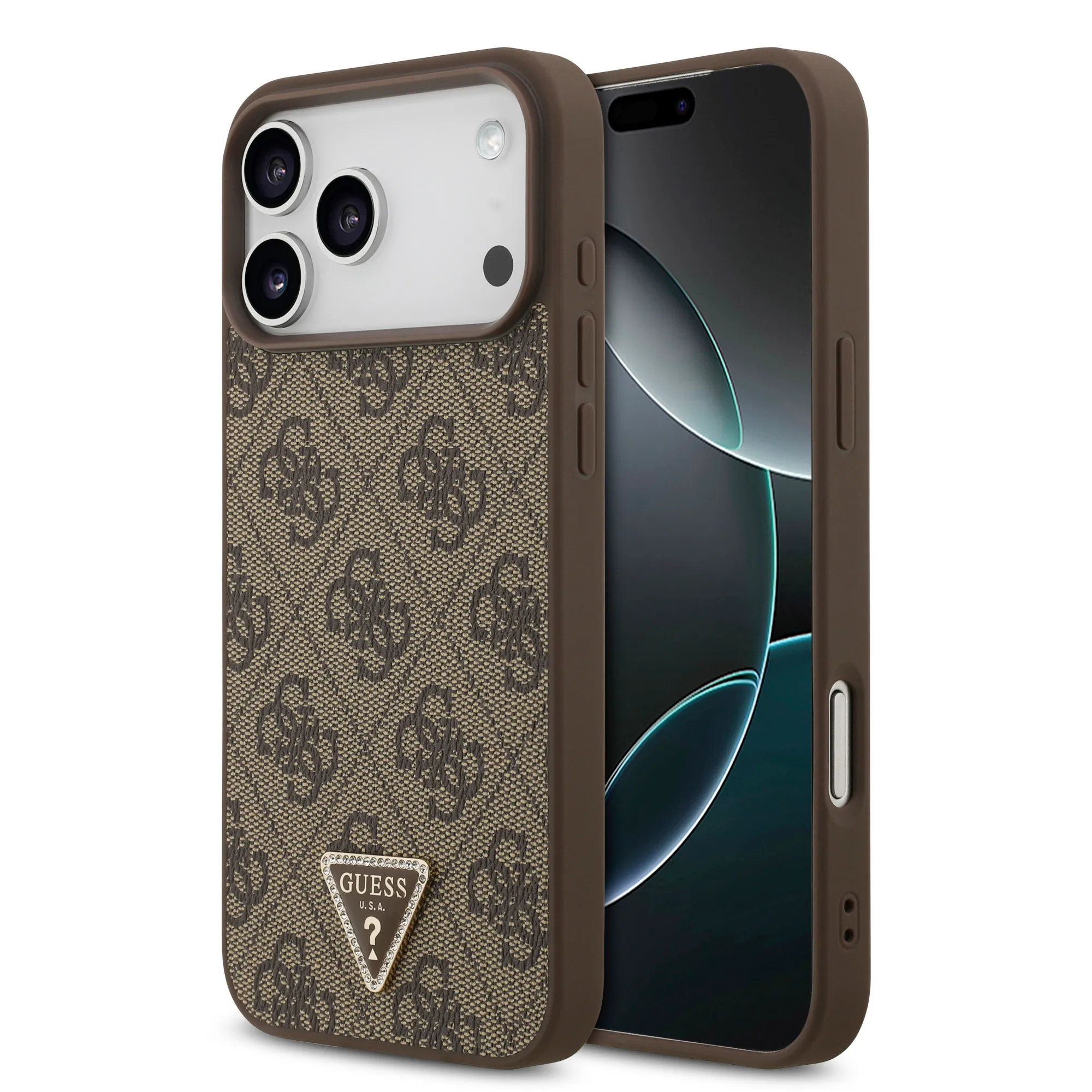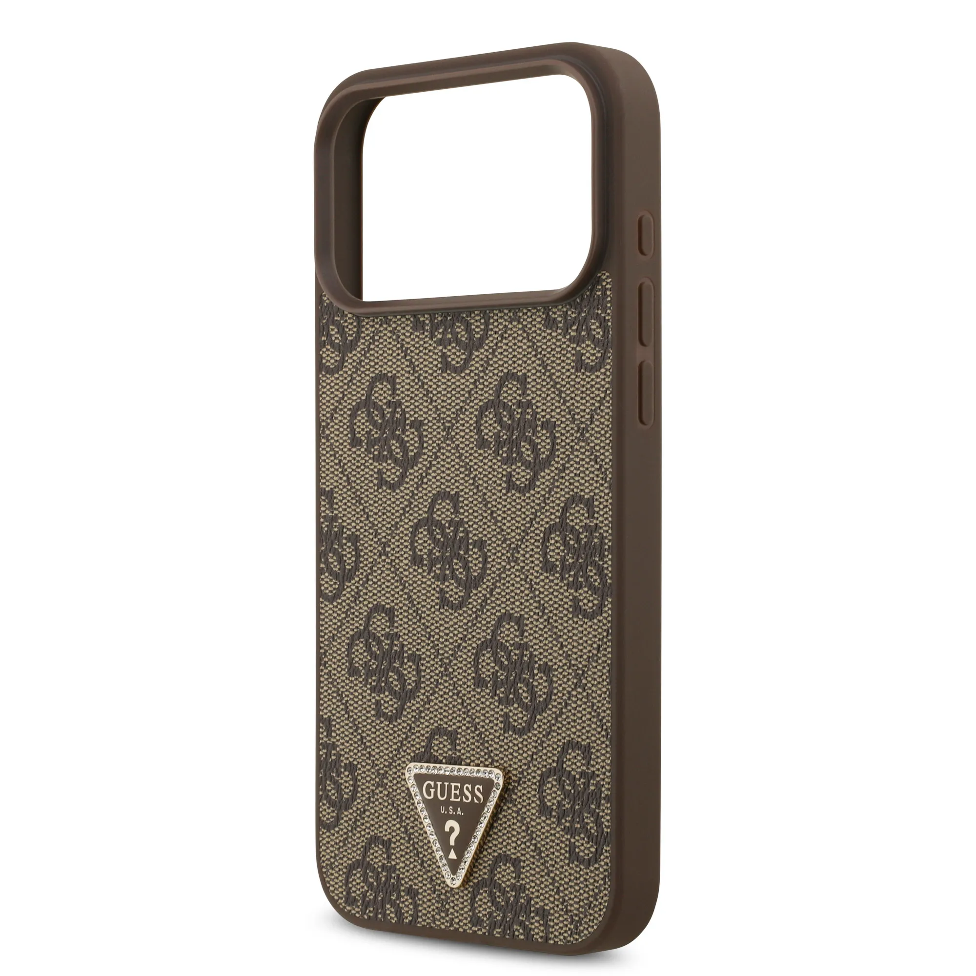 Guess MagSafe 4G PU Leather Case With Triangle Logo For iPhone 17 Pro Max – Brown