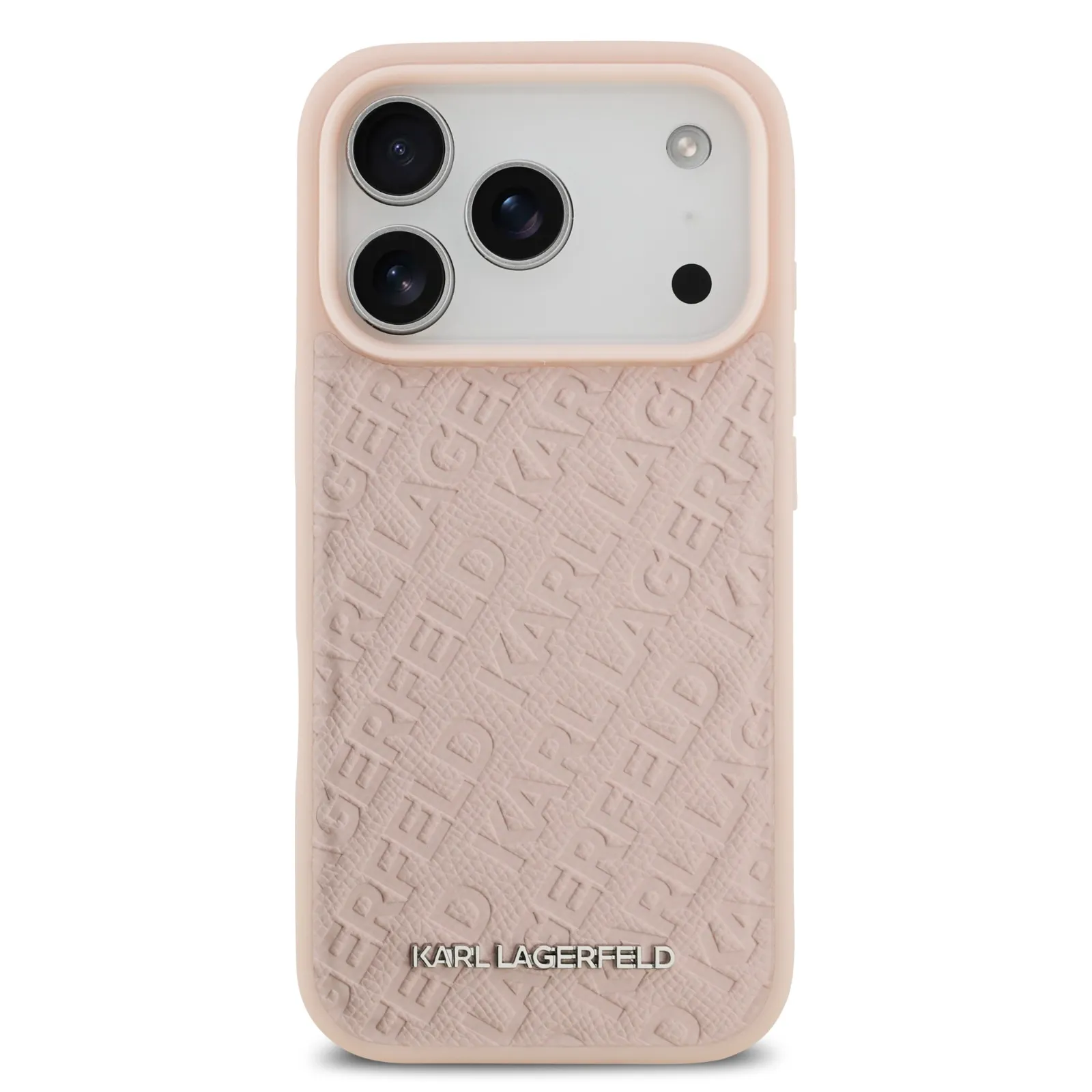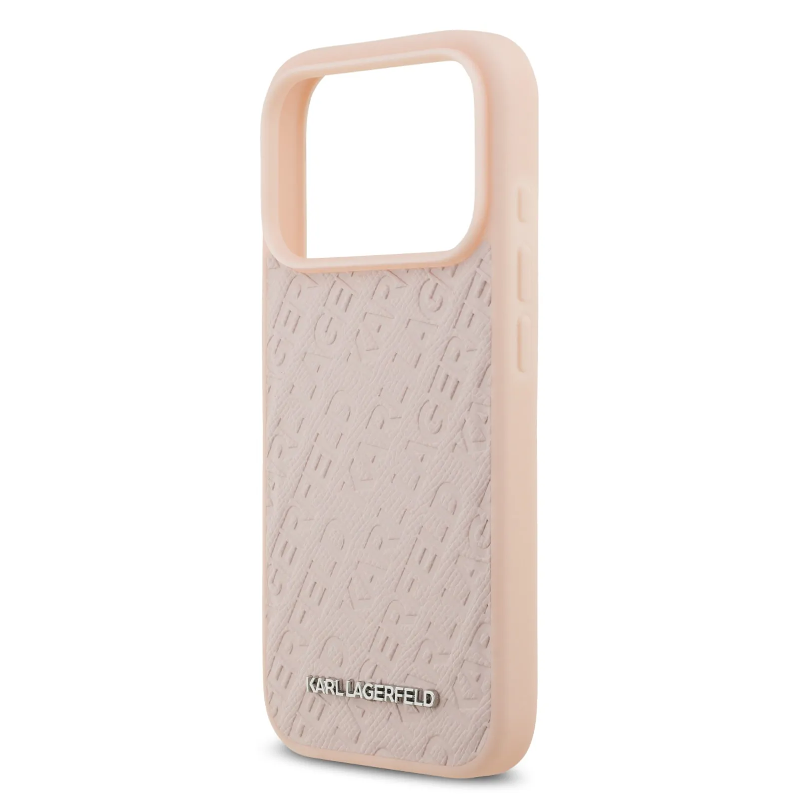 Karl Lagerfeld MagSafe Full Wrapped PU Leather Case With Karl Grain For iPhone 17 Pro – Pink