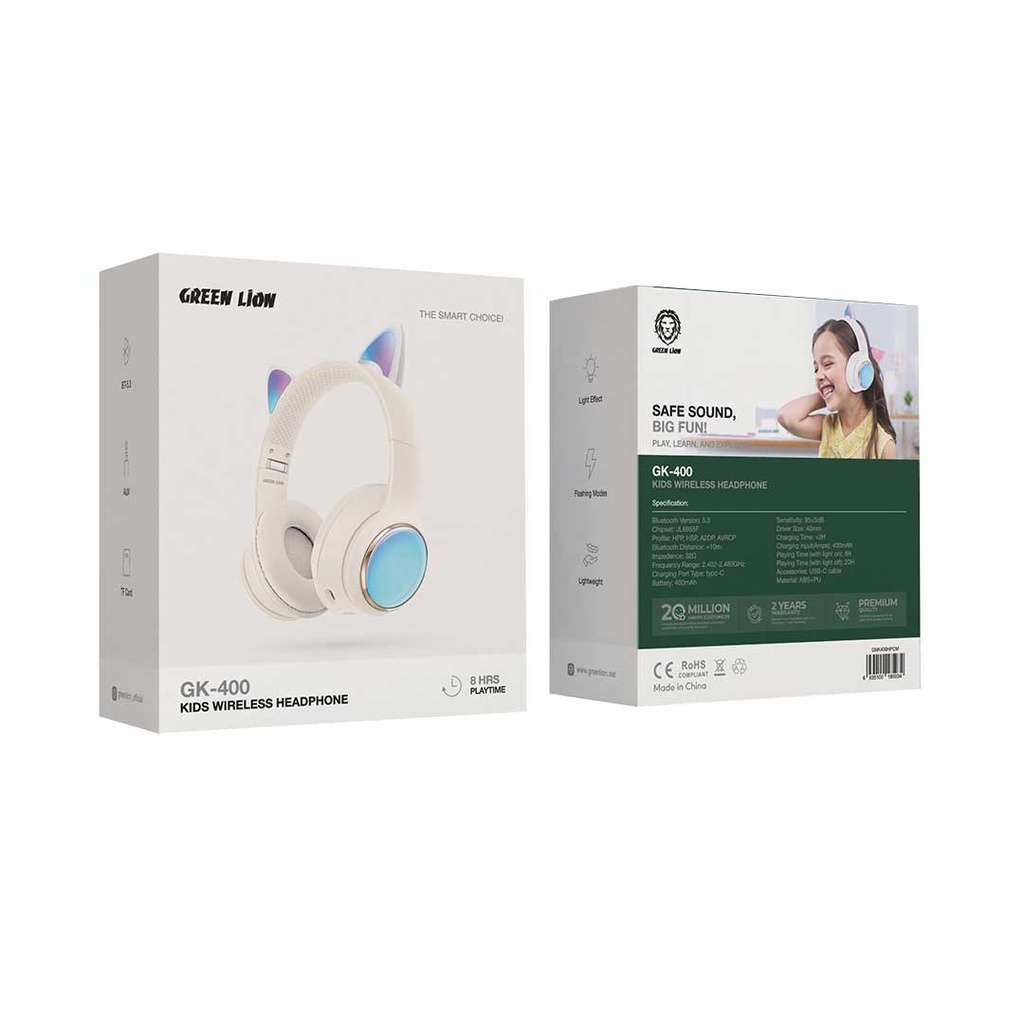 The Green Lion GL-400 Kids Wireless Headphone is designed for kids to listen to music without damaging their hearing system. This headphone has about 20 hours of playing time and only takes less than 2 hours to charge. Due to the Bluetooth v5.3 used, the Green Lion Headphone can stay connected within a range of 10 meters. Lastly, the Green Lion GL-400 Kids Wireless Headphone has different light effects, all appealing to kids.