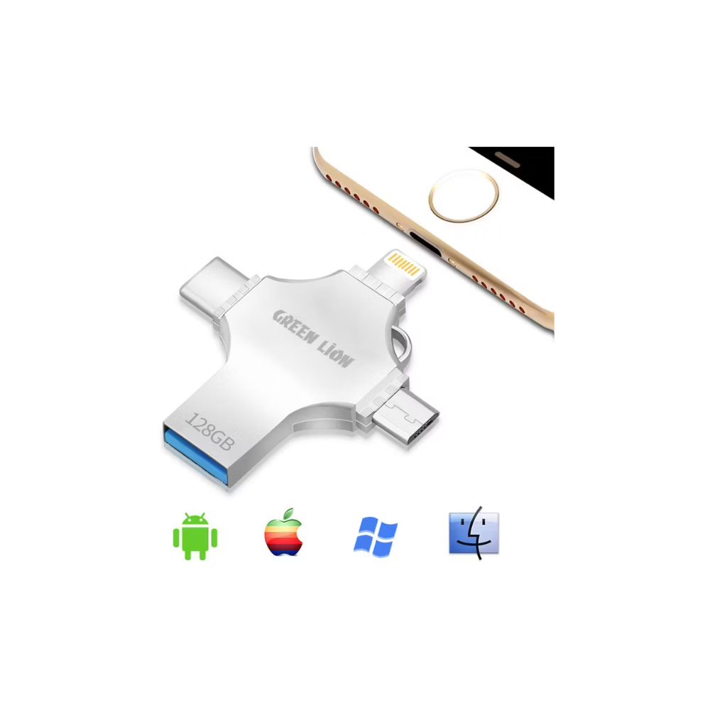 Compatible with iOS iPhone and iPad devices, USB3.0 interface for PCs, and Micro USB interface for Android smartphones and tablets. This 4-IN-1 USB flash drive has four connections. The iPad Pro, MacBook Pro, and other devices that use the Type-C interface are compatible with the Type-C interface. Practically all audio and video formats are compatible. You can always enjoy your favorite music and movies. You won’t have to be concerned about your phone, camera, or tablet running out of memory. This USB memory stick has a huge capacity for data storage. Photos and movies may be quickly and easily transferred between Android, iPhone, iPad, and desktops using a Lightning Flash Drive. enables memory free on your mobile devices without the use of a wire or iCloud. Specification