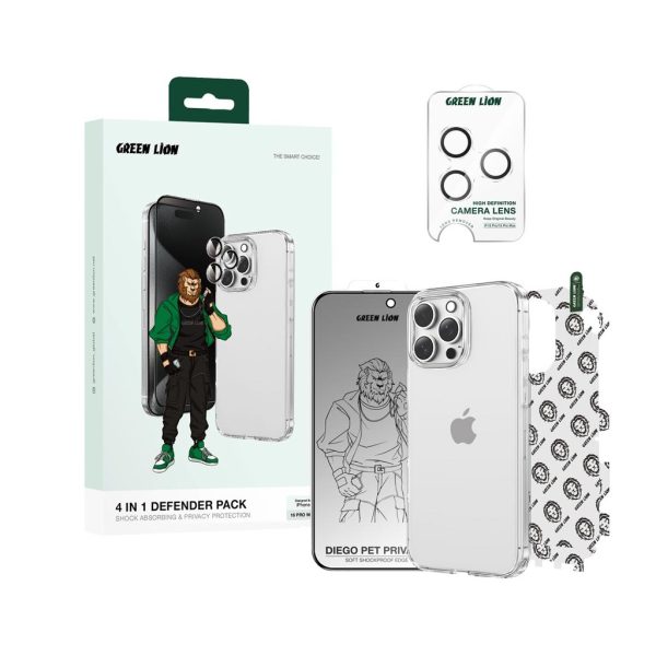 Green Lion 4 in-1 Defender Pack Privacy For iPhone 16 Pro/Pro Max is a smart choice for iPhone fans to protect their device from possible damage. To ensure users are protected from daily wear and tear, the anti-shock case delivers additional impact resistance. The camera film protector would protect camera lenses from scratches, dust, and dirt. Also, 3D soft edge glass provides a full-screen privacy cover to prevent your screen work from others. Moreover, HD nano back film offers powerful protection for the back of your phone to prevent scratches.